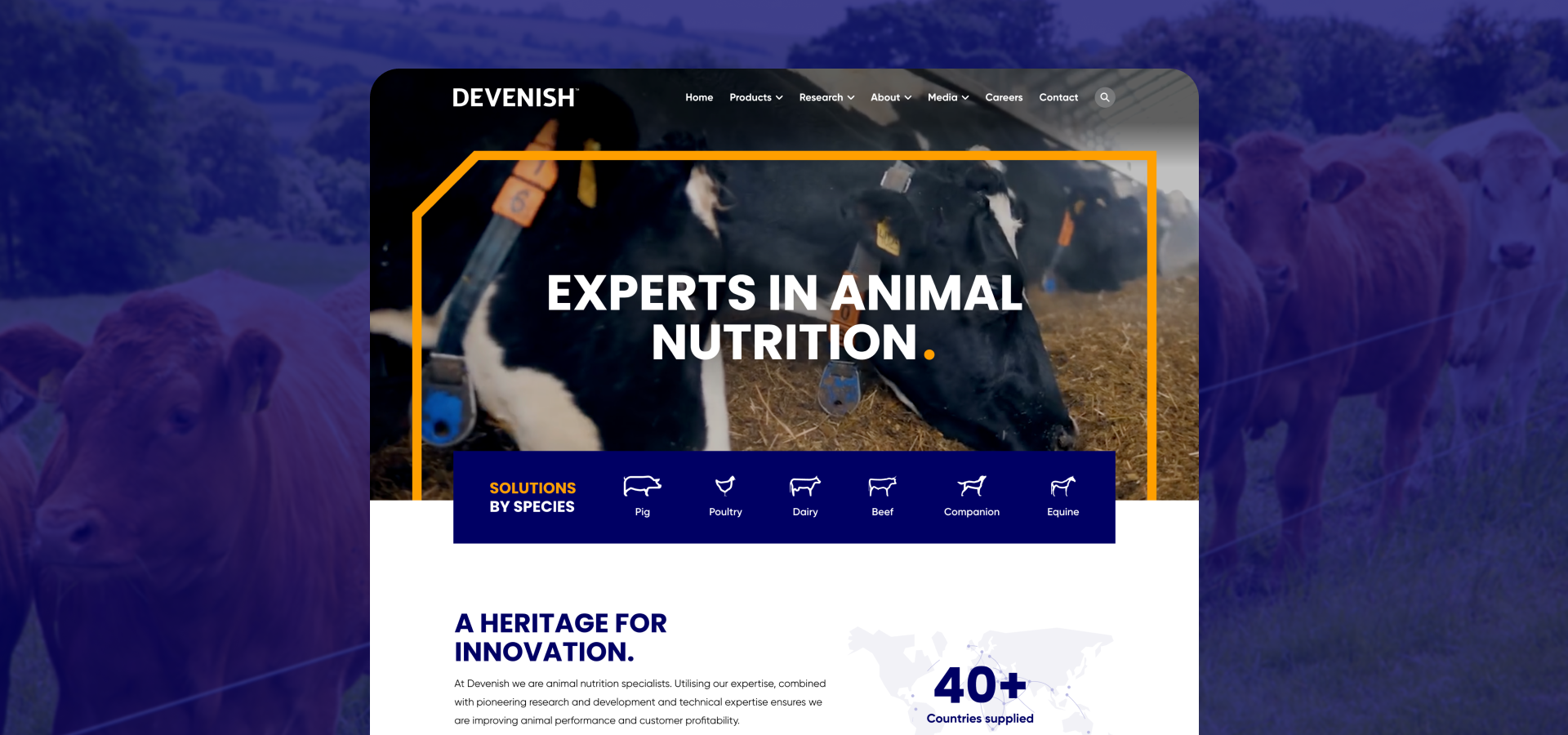 A custom website for Devenish Nutrition, designed to streamline how users discover the right nutrition solutions